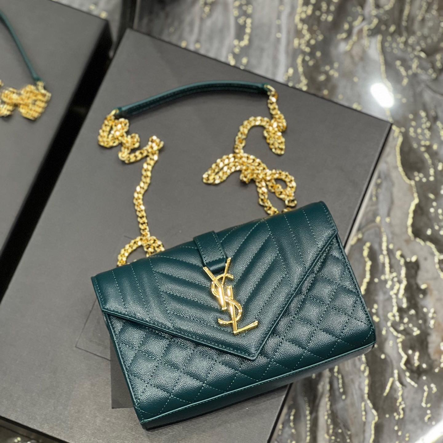 Sa**t Lau*nt cassandre matelassé leather shoulder bag 4×14×22cm