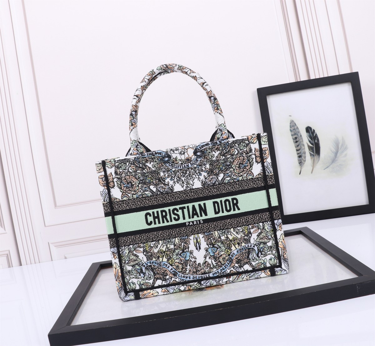 medium D*or book tote ecru multicolor 36 x 27.5 x 16.5 cm